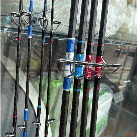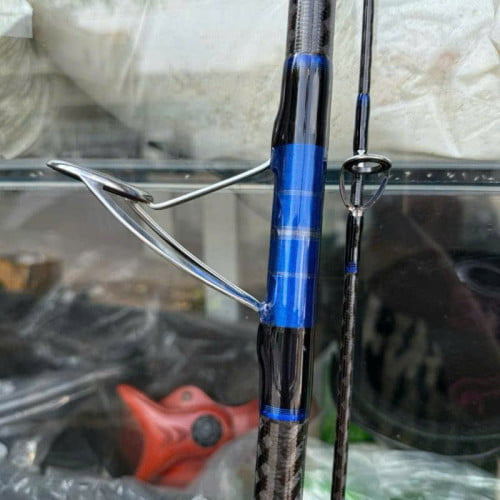 Cần sử dụng 100% carbon xoắn 3K với thân dày, cho cảm giác chắc tay và độ ổn định cao khi tải nặng, hạn chế rung khi cá kéo mạnh.